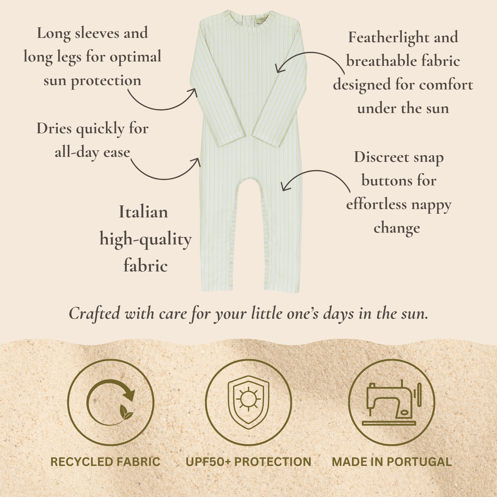 The swim/uv suit is protective for the baby's skin, sustainable and beautiful- couldn't ask for more! Contact with Stefania was great - she was very helpful and answering very fast. I wish there were more companies like this!