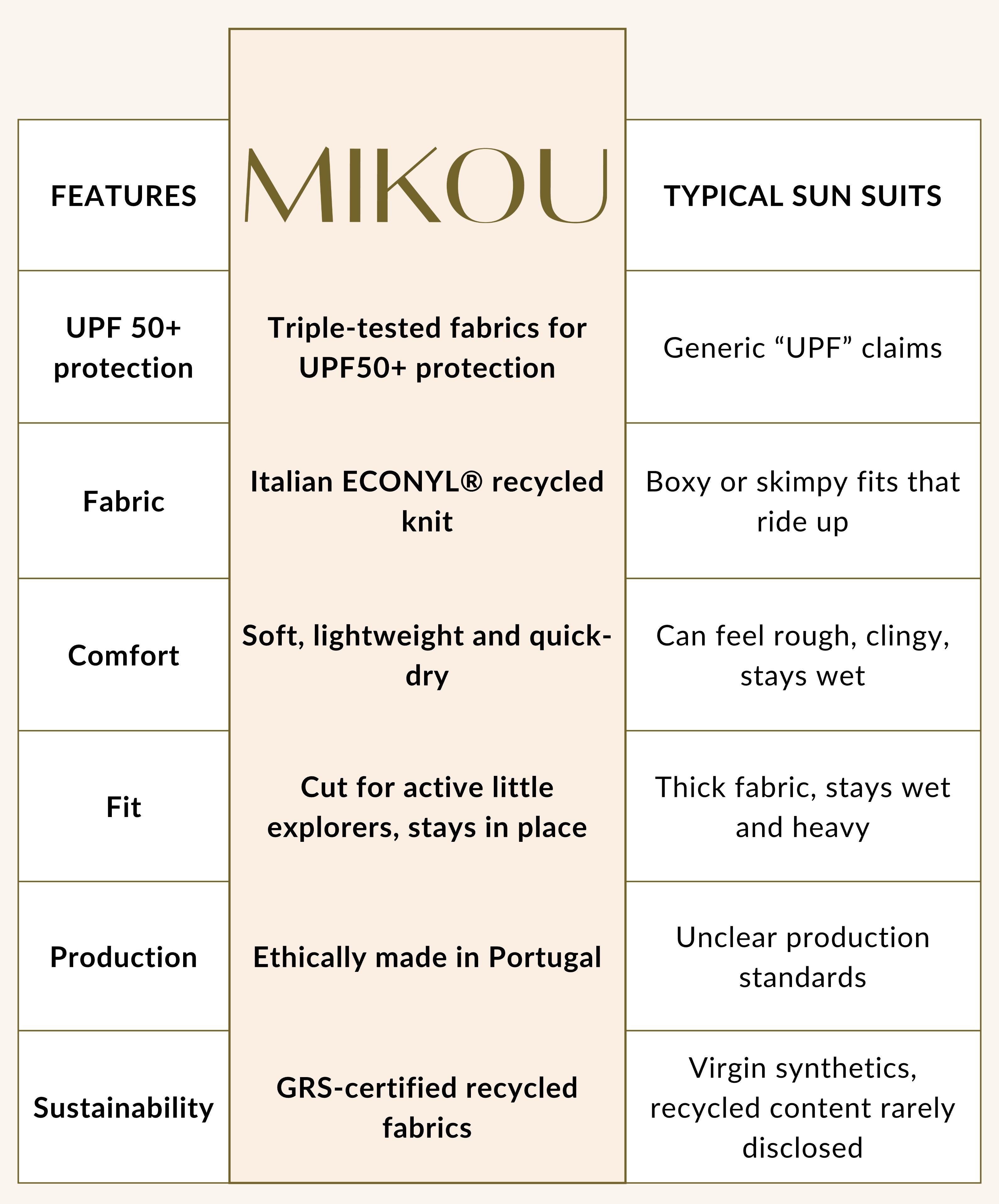 Our collections are made in Portugal by Filipa and her talented team. Producing in Europe comes with a certain cost. It’s not always the easiest choice, but it’s one we’re proud of, as it respects the dignity and welfare of those who make our garments. When you choose MIKOU, you're passing on to your children the value of caring about the hands behind what they wear. Learn more here